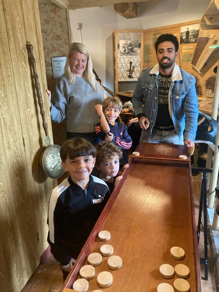 Ze mochten bij de ‘Kiek- en tiktaofel’ digitale spelletjes doen. Op de eerste verdieping zaten de schminksters klaar om de kinderen een voorbeeld te laten uitzoeken. Ze kwamen later met prachtige creaties naar beneden. Ook werd daar driftig gesjoeld om punten te scoren. Op de tweede verdieping mochten de kids graan malen en wegen. Het meel kregen ze in een zakje mee naar huis. Op de grote ‘waog’ konden ze zelf gewogen worden. Hun gewicht werd op de routekaart bijgeschreven. Op dezelfde verdieping mochten ze kleine klompjes in grote klompen gooien. Elke grote klomp heeft een andere waarde. Natuurlijk heb je in een molen muizen. Ook in de ‘Jan Pol’. De kinderen moesten hun best doen ze een tik te geven.